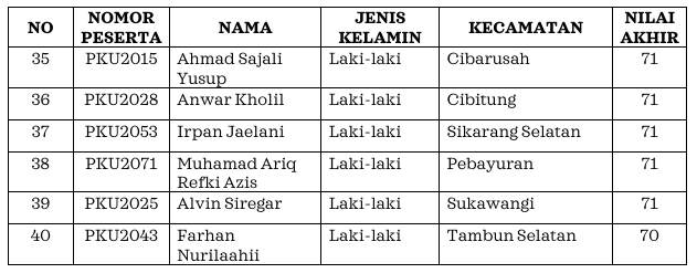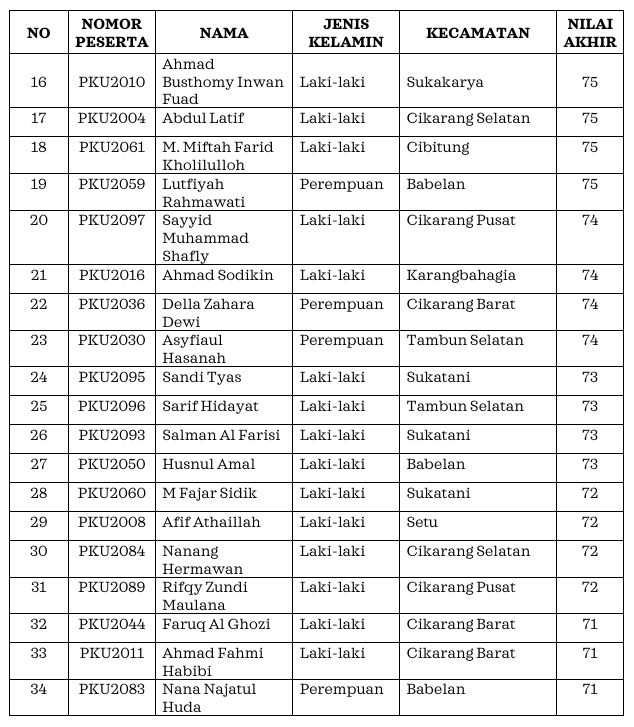 Dibawah ini ke 40 Mahasantri terpilih untuk PKU MUI Kab. Bekasi Tahun 2024 :